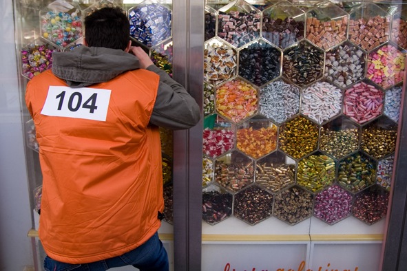Al principio de la Gran Vía de Alfonso X El Sabio, frente a la entrada al museo del convento de Santa Clara, hay un quiosco en el que se venden golosinas. Queremos una foto de esos objetos dulces ordenados o desordenados, que de las dos formas los hay.
